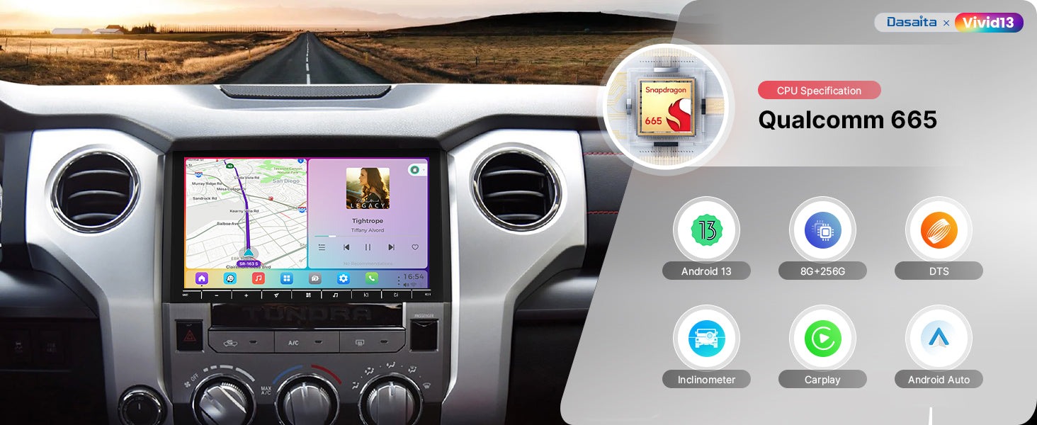 Dasaita Vivid13 Car Stereo for Toyota Tundra 2014-2021 Wireless Carplay & Android Auto Car Radio | Qualcomm 665 | 10.2" QLED Screen | Wifi+4G LTE | 8G+256G | DTS|GPS Navigation Head Unit | Optical Output