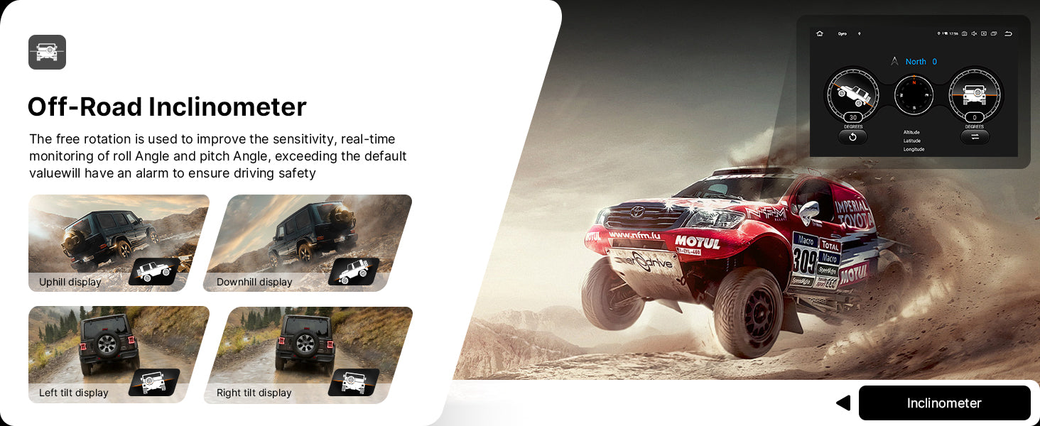 Capteurs SpéciauxGyroscope et Inclinomètre intégrés (Mode Off-Road)